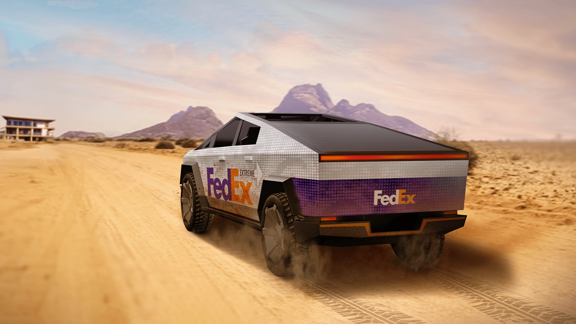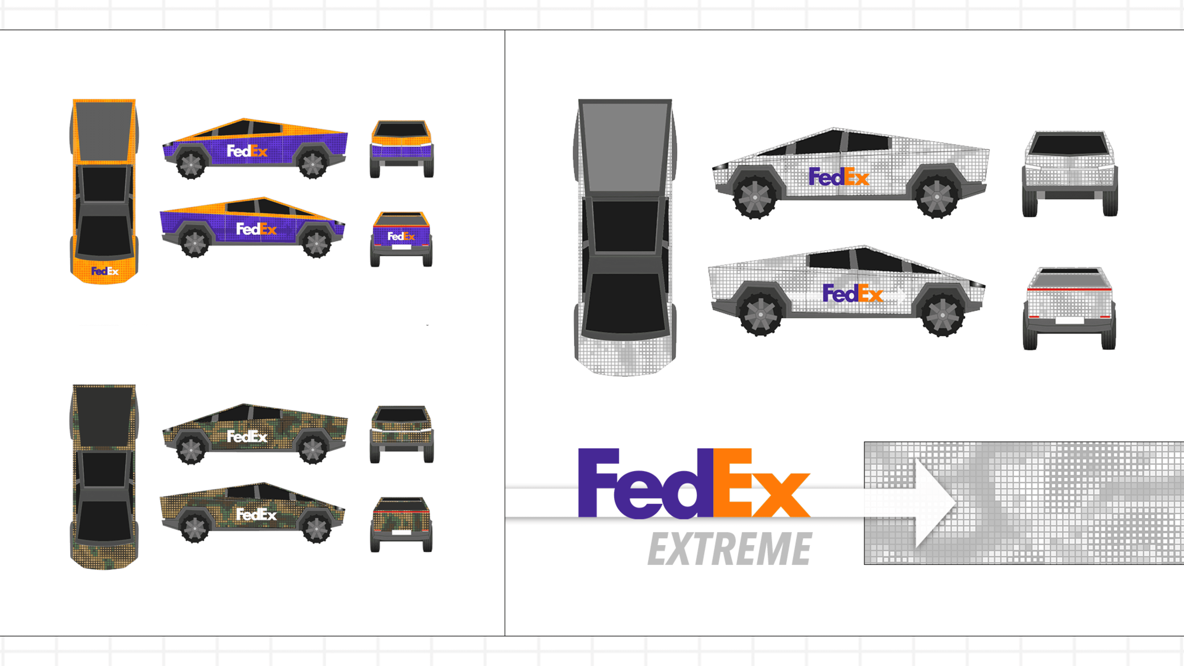 This project explores a vehicle graphics for the FedEx Cybertruck, an off-road, electric delivery vehicle introduced under FedEx’s Technology and Innovation Policy to handle extreme terrains. I designed a graphics that visually express the Cybertruck’s innovative nature and its capability to operate in challenging environments, while integrating FedEx’s branding.