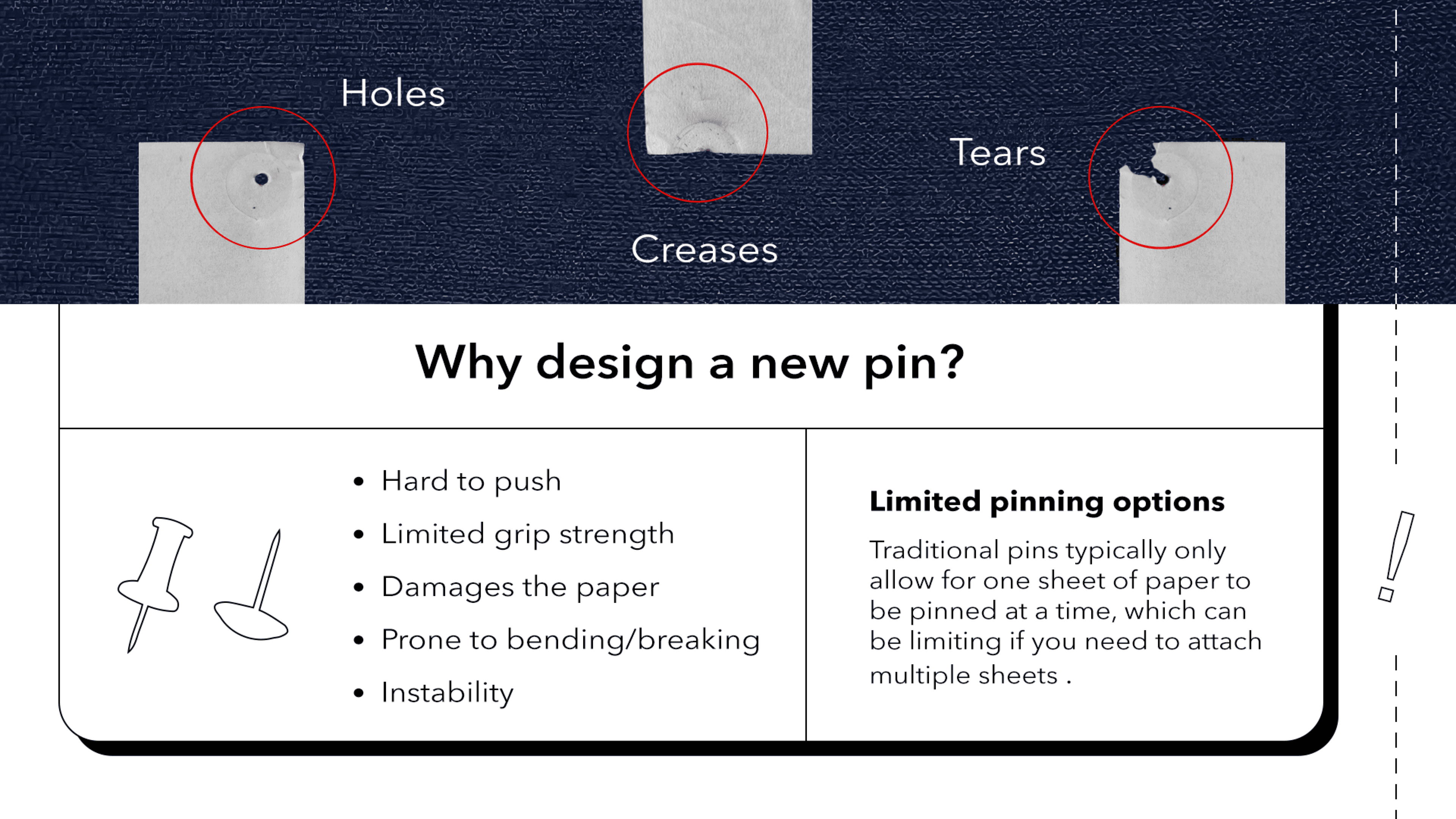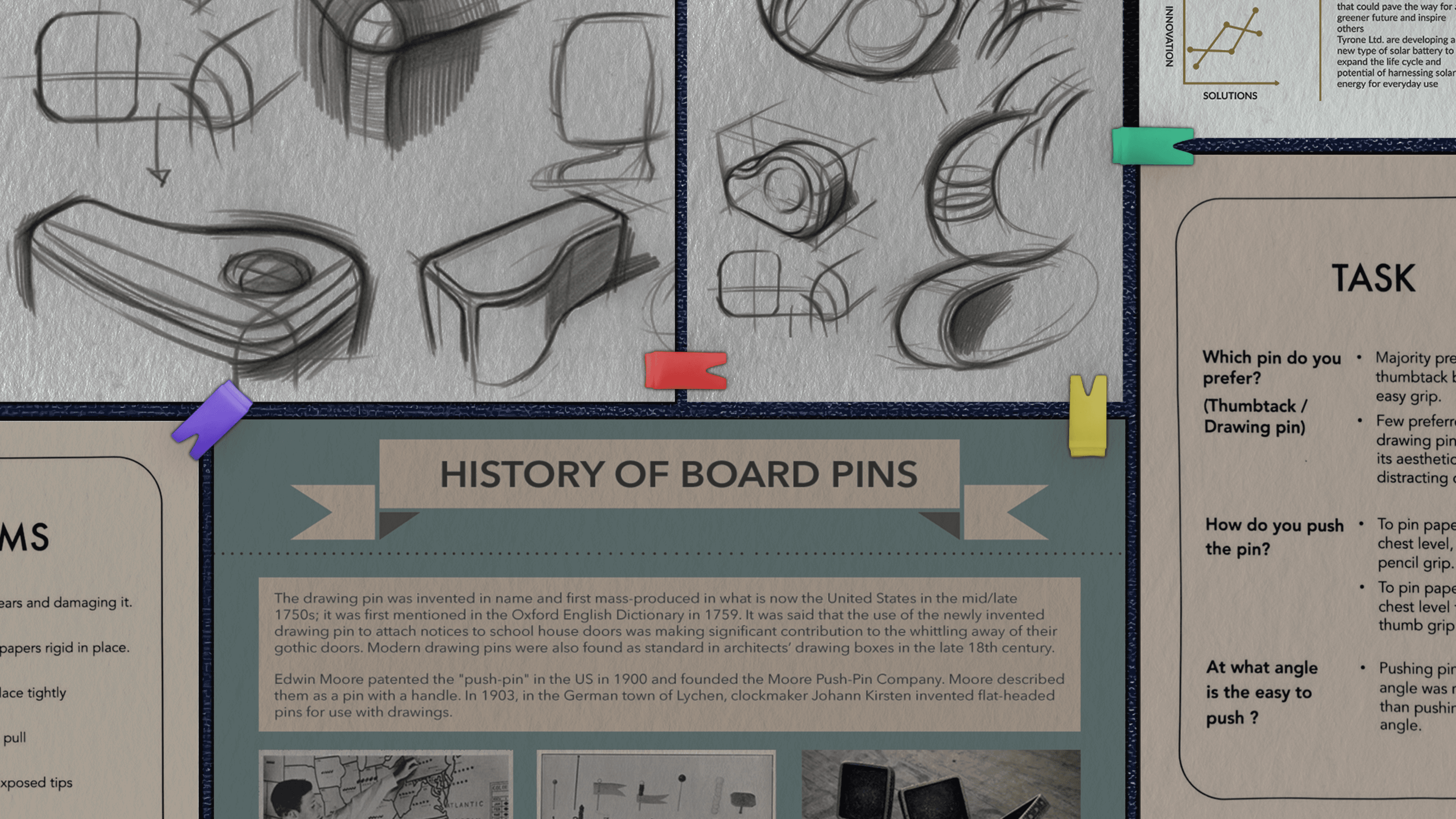 This project, titled “NeoTack – The New Board Pin,” is a simple product design intervention that reimagines the everyday thumbtack to make it safer, more ergonomic, and less damaging to paper. The core aim is to minimize holes, tears, and creases in pinned sheets while improving grip, stability, and ease of use for a wide range of users.